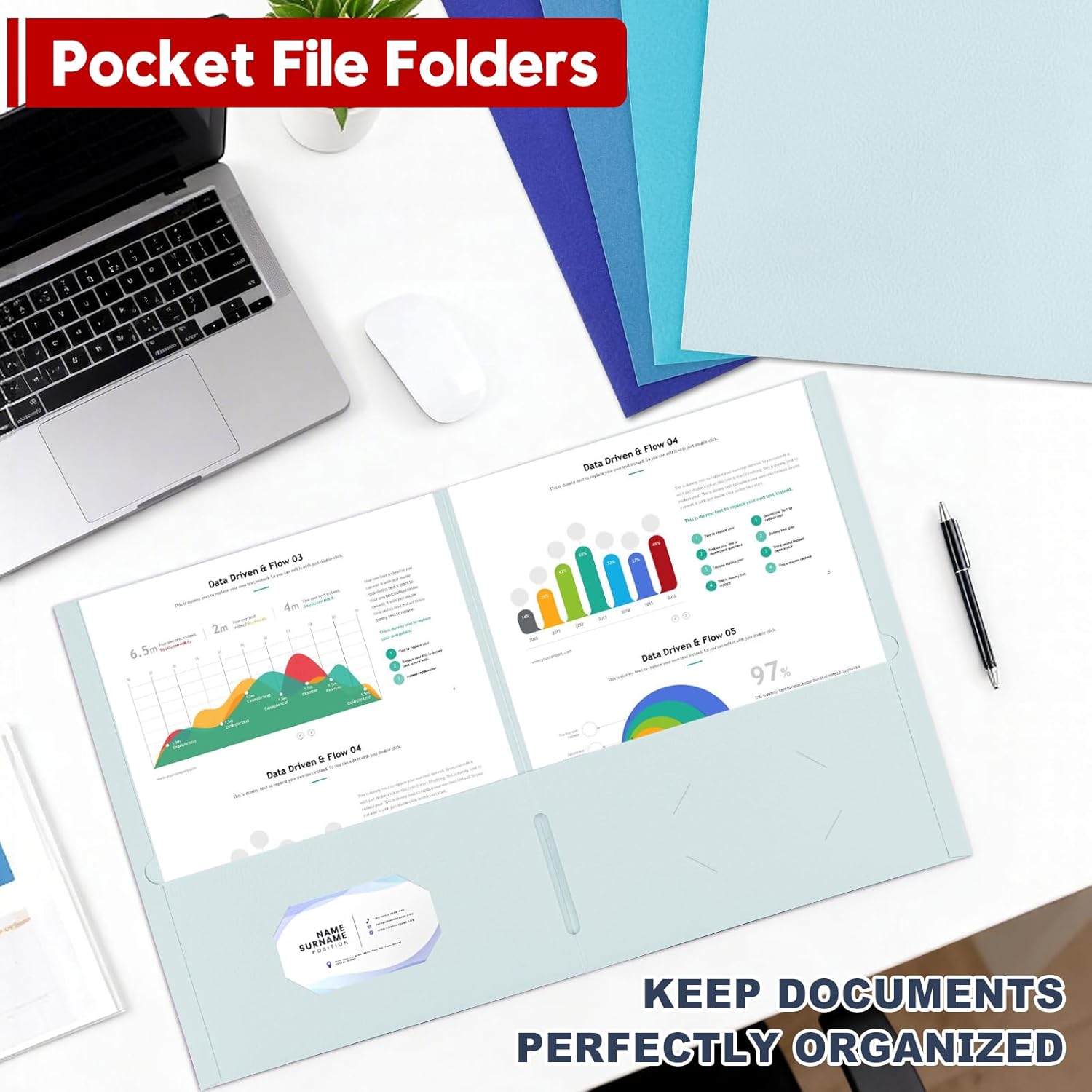 File Folders,100 Pack Letter Size Folders with Business Card Slot, 2 Pocket Folders for Office School,Assorted 4 Colored File Folders