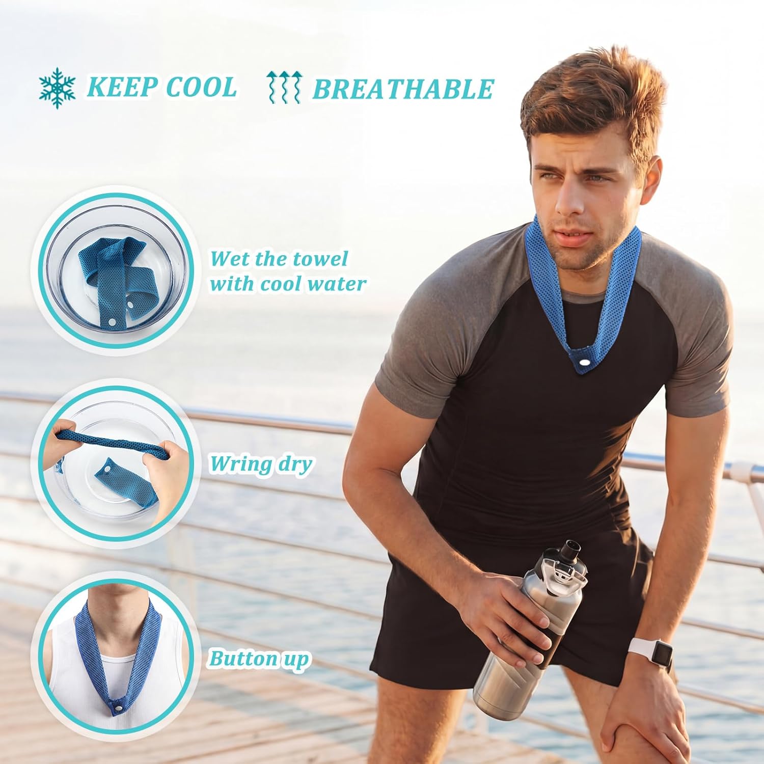 | Included Components | 60 x Cooling towels for neck with snap button |
