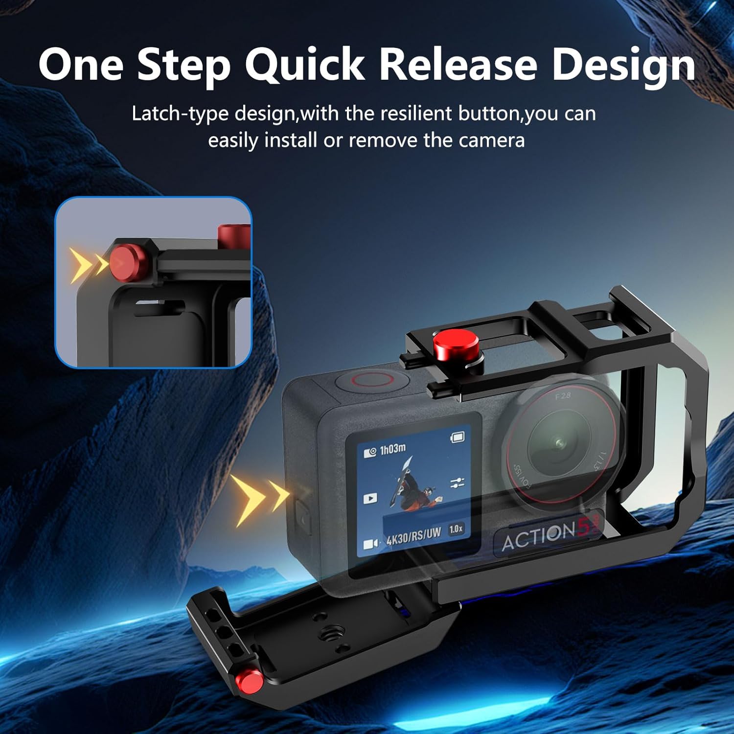 | BuiltIn Media | Camera Cage for DJI Action 5 Pro Action 4 Action 3 |